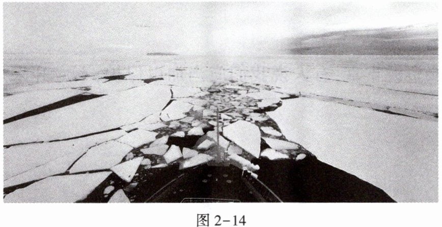 南极地区是自然资源的宝库、科学研究的殿堂。图2-14为“雪龙”号破冰图。
