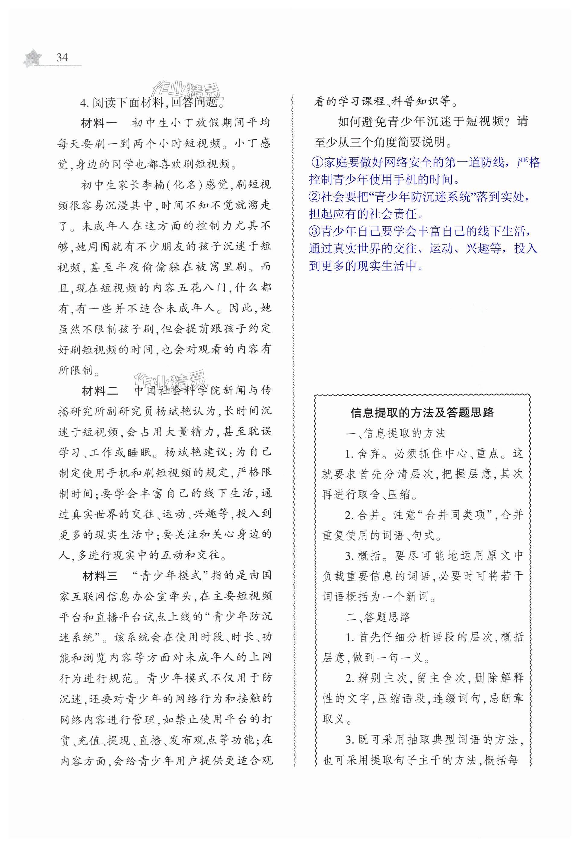 注:目前有些书本章节名称可能整理的还不是很完善,但都是按照顺序排列的,请同学们按照顺序仔细查找。练习册 2025年暑假作业本大象出版社七年级语文道德与法治历史 答案主要是用来给同学们做完题方便对答案用的,请勿直接抄袭。