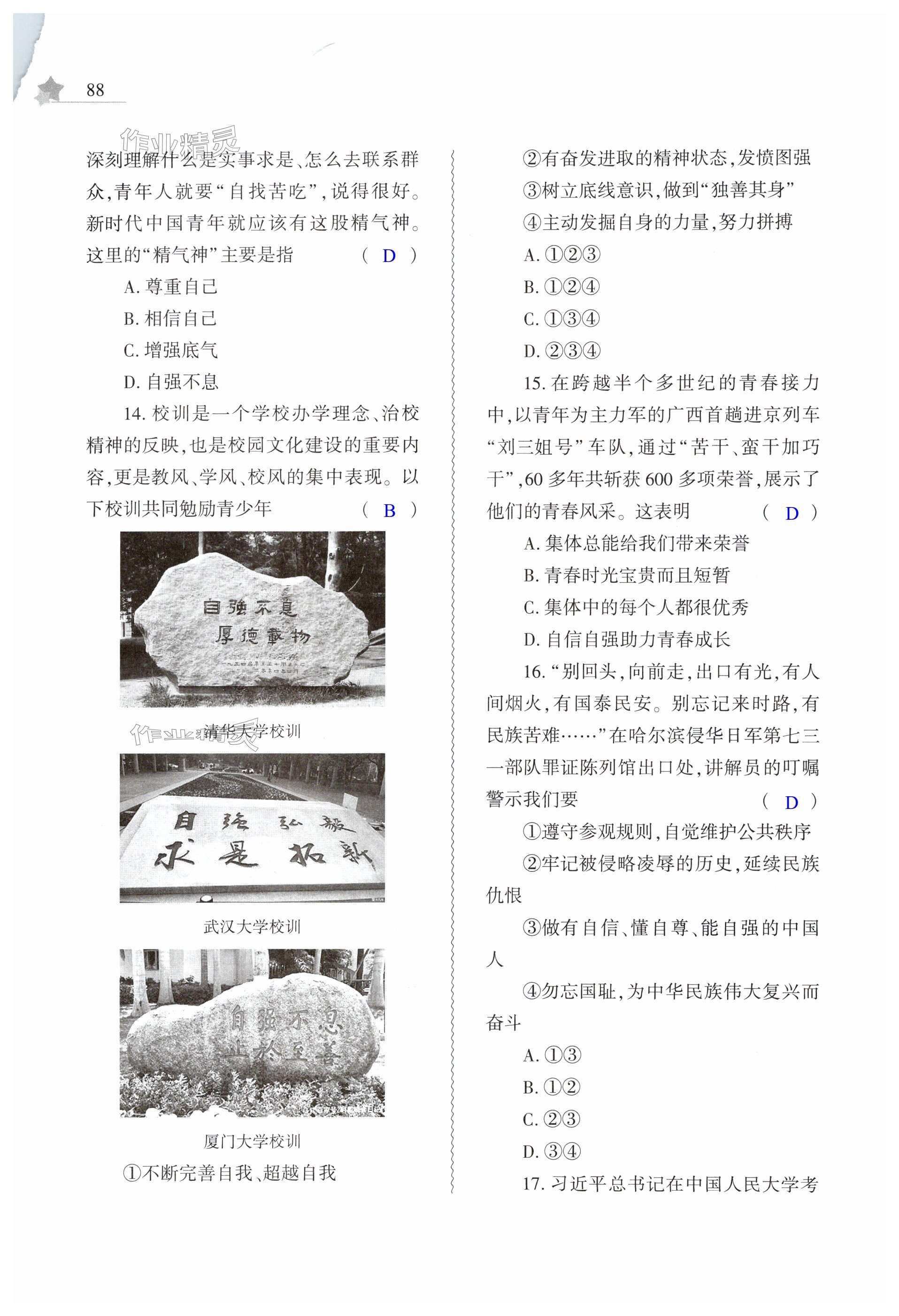 注:目前有些书本章节名称可能整理的还不是很完善,但都是按照顺序排列的,请同学们按照顺序仔细查找。练习册 2025年暑假作业本大象出版社七年级语文道德与法治历史 答案主要是用来给同学们做完题方便对答案用的,请勿直接抄袭。