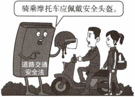 (2)①遵守交通规则是法定义务,具有强制性,是公民不可推卸的责任。②生命至上,佩戴安全头盔是保障生命安全、珍爱生命的表现。