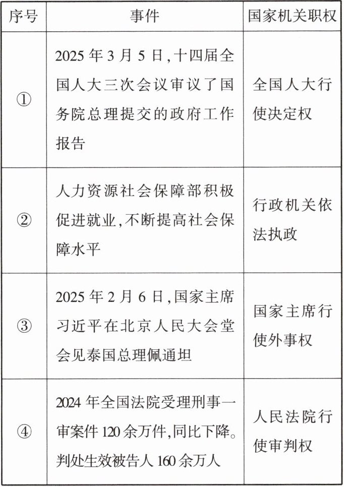 16. 国家机关依法行使权力,对人民负责,受人民监督。下列事件与国家机关职权对应正确的是 (