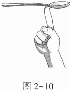 12. 如图 2-10 所示,重为 0.5 N 的汤勺在指尖处静止,画出汤勺所受重力的示意图。