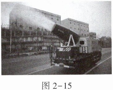 17. 如图 2-15 所示为多功能抑尘车(又名雾炮车),它能喷出细小的水雾,起到净化空气的作用。其参数如下:空车质量为 6 t,满载时可装水 $ 18 \, \text{m}^3 $,满载时在平直公路上匀速行驶 3 min(不喷水)可走 900 m。($ g $ 取 10 N/kg)