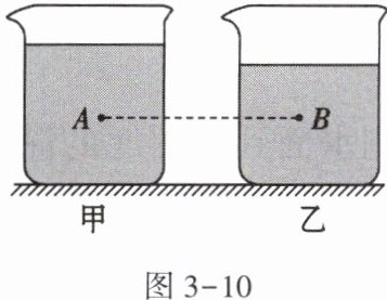 12. (双选)如图3-10所示,在水平桌面上的甲、乙两个完全相同的烧杯中,分别装有质量相等的两种液体。液体中的A、B两点在同一条水平线上。甲、乙两个烧杯对桌面的压强分别为$p_{甲}$、$p_{乙}$,液体对两点产生的压强分别为$p_{A}$、$p_{B}$。下列判断正确的是()