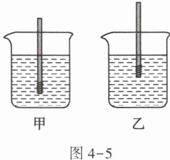 9. 某同学将一支自制的简易密度计放入盛有不同液体的两个烧杯中,静止后的情形如图4-5所示,两液面相平,下列判断正确的是()