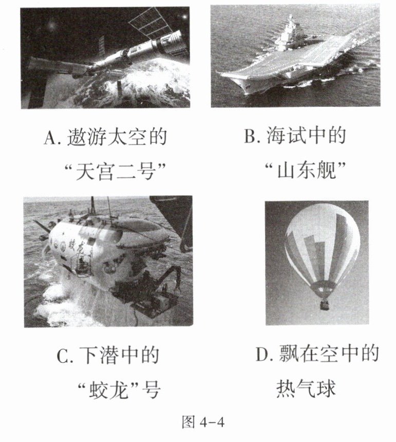 8. 如图4-4所示的四种情景,没有受到浮力的物体是()