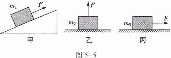7. 如图 5 - 5 所示,已知 $ m_1 > m_2 > m_3 $,在同样大小的力 F 的作用下,三个物体沿力的方向移动相同的距离 s,则力 F 所做的功()