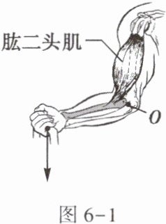 1. 如图6-1,人的前臂可以看成是以肘关节为支点的杠杆,当手提着物体匀速曲肘时,胳膊上的肱二头肌会对前臂施加一个动力,物体对前臂施加一个阻力,前臂这种结构的好处是____。在这个过程中,前臂肌肉施加的动力将会变____。