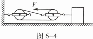 4. 如图6-4所示,用滑轮组拉动重为200N的物体在水平桌面上做匀速直线运动。已知F= 10N,滑轮组的机械效率为80%,则物体与桌面之间摩擦力的大小为____N。