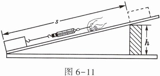 11. 如图6-11所示,将一个重9N的物体从斜面底端匀速直线拉到斜面顶端,沿斜面向上的拉力为3.6N,在斜面上移动的距离s= 1.2m,物体升高的高度h= 0.3m。下列说法正确的是()