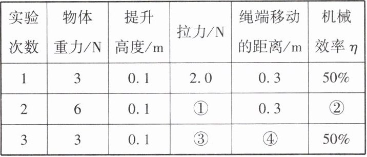 (1)在实验中,测量绳端拉力F时,应尽量竖直向上____拉动弹簧测力计,读出图6-16乙中弹簧测力计的示数为(表格中①处数据)____N。