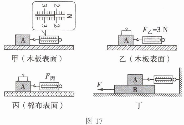19. 小明在“探究影响滑动摩擦力大小的因素”实验中,设计了如图17所示的实验。