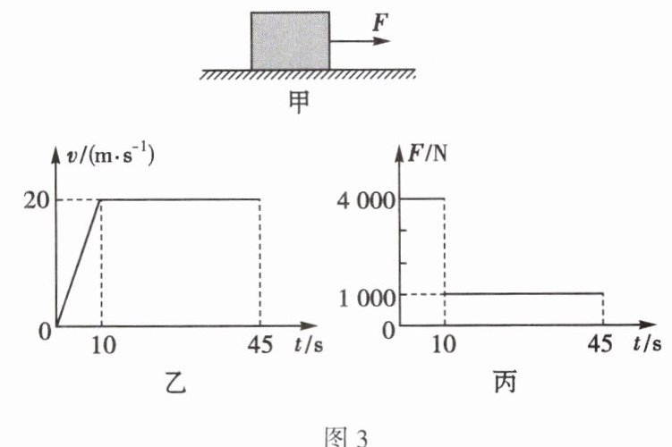 5. 如图3甲所示,在水平拉力F的作用下,物块在粗糙程度相同的水平面上做直线运动。0~45s,其速度v与时间t、拉力F与时间t的关系图像如图3乙、丙所示。由图像可知,在前10s内,物块在水平方向受____(填“平衡力”或“非平衡力”)作用;在第5s时,物块受到的摩擦力大小为____N;在第45s时,若重力突然消失,物块将____(填“做匀速直线运动”“静止”或“做加速直线运动”)。