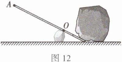 15. 如图12所示,以O为支点用撬棒撬石头,画出作用在A点的最小动力F的示意图。