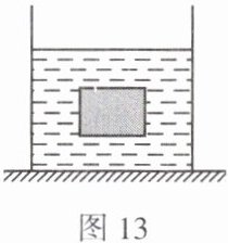 16. 浸没在水中的物体,上表面受到水的压力大小为6N,下表面受到水的压力大小为10N,请在图13中画出物体受到的浮力$F_{浮}$的示意图。