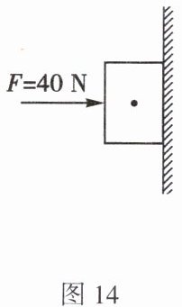 16. 如图14所示,施加一水平向右的40N的压力使物体紧贴在墙壁上并保持静止,请作出物体受到的摩擦力f和重力G的示意图。