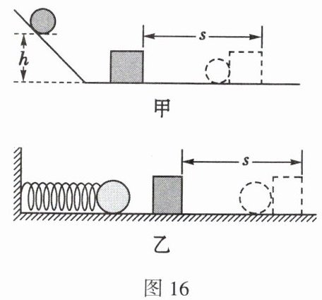 (4) 小亮另外设计了图16乙所示的装置来探究小球动能的大小与质量的关系,他用质量不同的小球将同一弹簧压缩相同程度后由静止释放,撞击同一木块,发现木块移动的距离相同。这个设计方案____(填“可行”或“不可行”),原因是相同的弹簧压缩相同程度后,由静止释放转化的动能____(填“相同”或“不同”)。