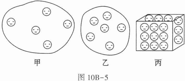4. 如图 10B - 5 所示是物质在三种状态下的物理模型,图甲中的物质处于____态,图乙中的物质处于____态,图丙中的物质处于____态。