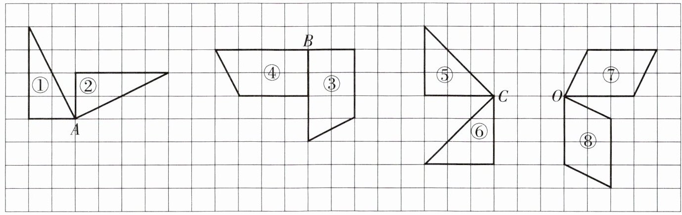 (4)⑦号图形绕点()按()方向旋转$90^{\circ }$可得到⑧号图形。