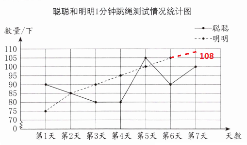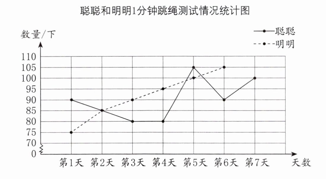 4. 下面是聪聪和明明连续7天测试1分钟跳绳的情况。