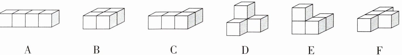 (2)用4个同样的正方体积木分别摆成下面的几何体。