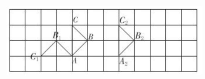 (2)画出三角形ABC向右平移3格后得到的三角形$A_2B_2C_2。$