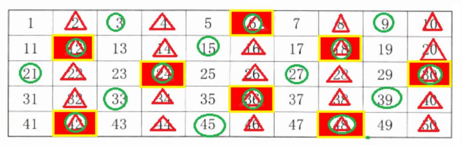 (1)用△圈出上表中2的倍数,用○圈出上表中3的倍数。
