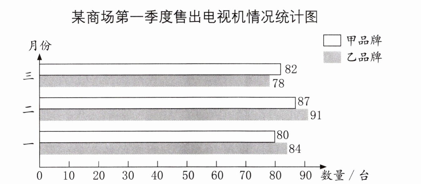 (2)第一季度乙品牌电视机的销量高。 答案不唯一