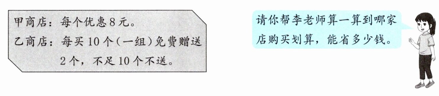 5. 李老师要为学校购买 48 个篮球。甲、乙两家商店中,同样的篮球原价都是每个 58 元。这两家商店的优惠方式如下。