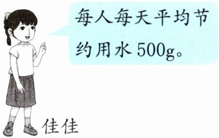 5. 佳佳一家4口人,一周能节约用水多少克?合多少千克?请你算一算,她家一年(按365天计算)能节约用水约多少吨?(得数保留一位小数)