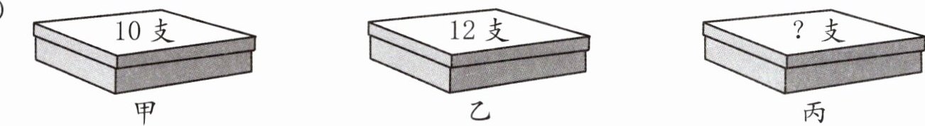平均每盒有10支钢笔,丙盒里的钢笔()。