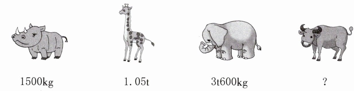 (1)四个动物比体重,小象最重,小牛排第三。小牛的体重可能是()。