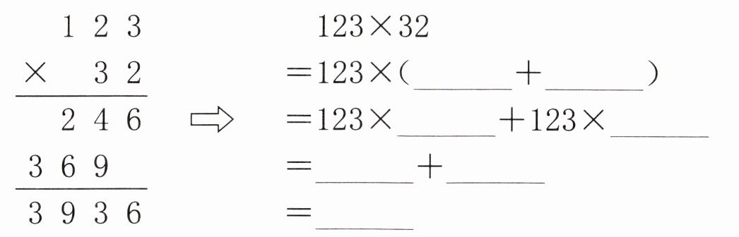 (4)2 30 2 30 246 3690 3936 a×(b+c)=a×b+a×c