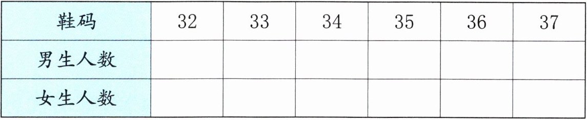 (2)三(1)班同学穿()码鞋的人数最多,穿()码鞋的人数最少。