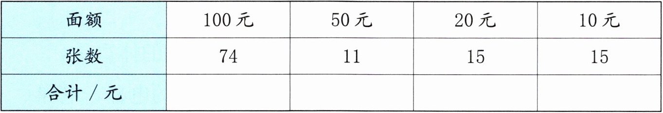 (2) 实际收到的钱如下表,请你把表补充完整。