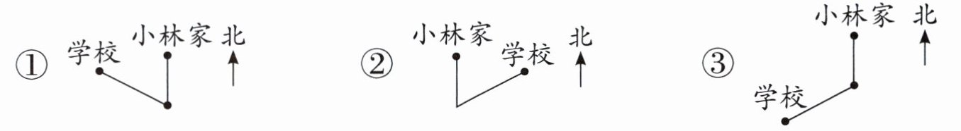 (3) 小林从家出发,先向南走一段路,再向西北走一段路,到达学校。小林行走的路线可能是( )。