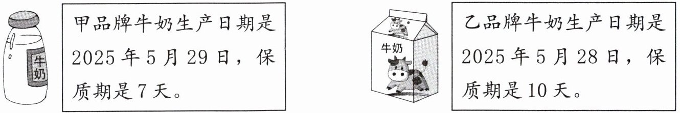 (2)小丽2025年6月5日准备从冰箱里拿牛奶喝。下面说法正确的是( )。(保质期计算通常从生产日期次日开始)
