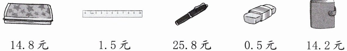 (2)答案不唯一,如:买上面文具中的两样,每样买一件,最多要花多少钱? $ 14.8 + 25.8 = 40.6 $ (元)