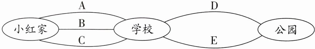 (2)从家到学校,小红选择走B路线,经过学校到公园,有()条不同的路。