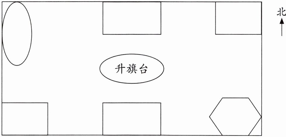 (1)升旗台的北面是多功能楼,南面是教学楼。