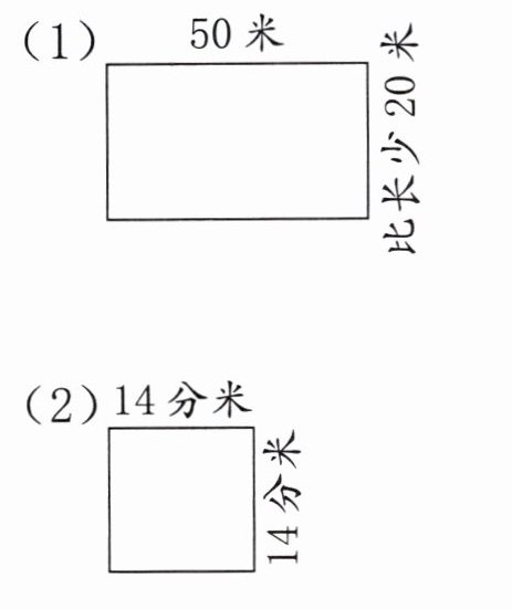 (1)宽:$50-20=30$(米) 周长:$(50+30)×2=160$(米)