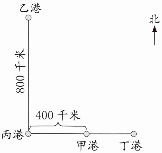 (2)“胜利号”轮船从丁港出发,向西行驶 20 小时后,到达丙港。丁港距离甲港多少千米?