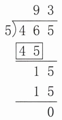 (4)学校餐厅运来465千克大米,5天刚好吃完,平均每天吃多少千克?右边竖式中,方框圈住的部分表示( )。