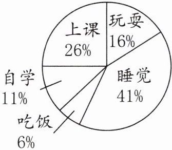 三、右侧是六(1)班小飞同学“流逝的一天”统计图。一天中,他所用时间最多的是
