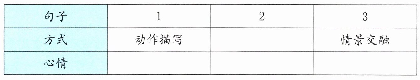 二、作家史铁生把《那个星期天》这篇文章描写得细腻而生动。品味下列语句,看看句中采用哪些方式描述了“我”怎样的心情,完成表格。