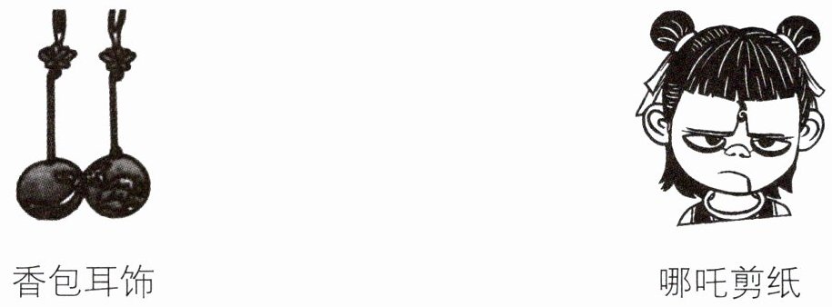 我对这样的尝试作品很感兴趣。像香包耳饰,把原本放在家里或挂在身上的香包变成了能戴在耳朵上的饰品,很新奇。还有哪吒剪纸。哪吒是我特别喜欢的神话人物,用剪纸把他的样子展现出来,特别生动。这些作品把传统民俗和我喜欢的东西结合起来,让我更了解也更喜欢传统民俗技艺,所以我很感兴趣。