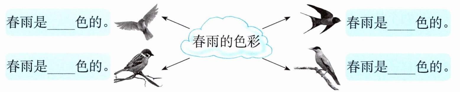 2. 本题考查对短文内容的理解。根据小鸟们的对话,分别找出它们认为春雨的颜色。