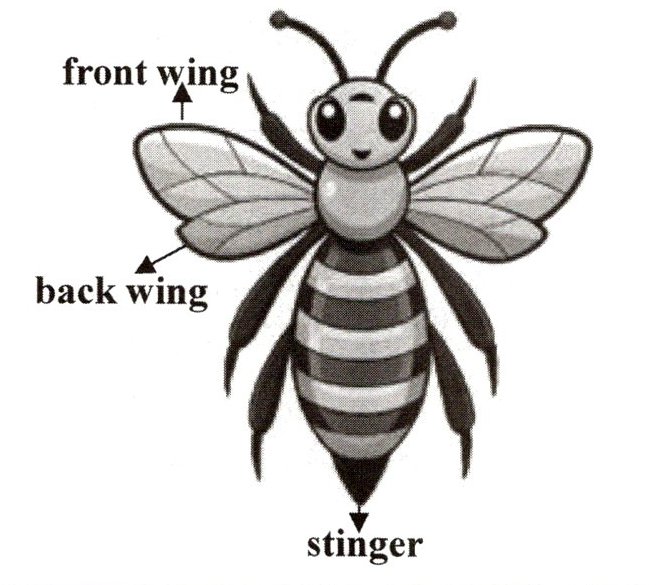 Bees have four wings. They can fly very fast with their wings working together. Only female(雌性的) bees have stingers. They use their stingers to protect(保护) themselves.
