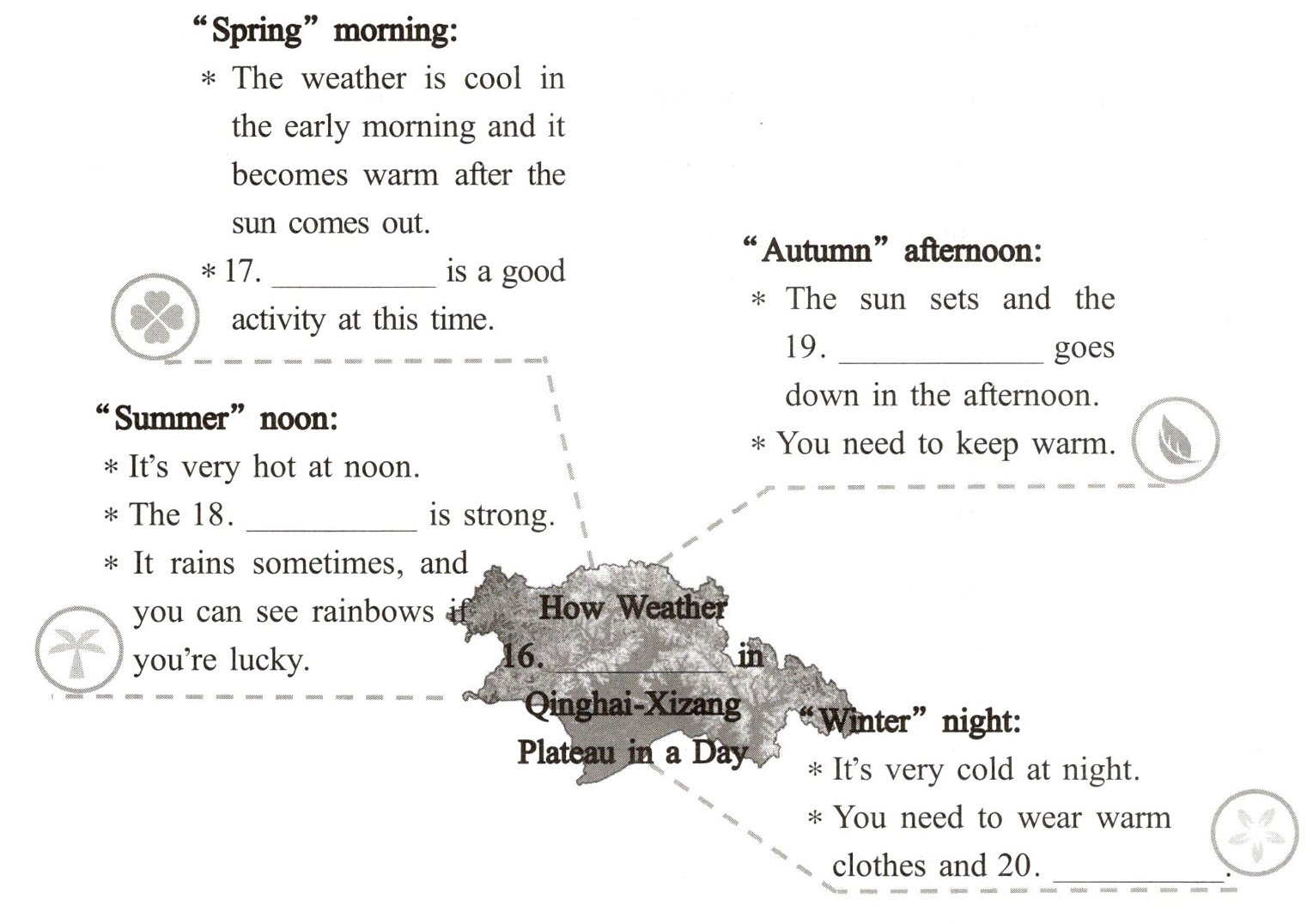 You have to be careful about the weather in the afternoon. As the sun sets(日落), it becomes cool again, just like autumn. If you don't keep warm, you may catch a cold(感冒).“Winter” nightAt night, the temperature gets very low, just like winter. You need to wear warm clothes. And don't go out because it often rains at night.