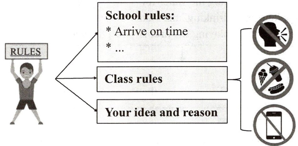 俗话说:无规矩不成方圆。请根据以下图示,介绍一下你的校规和课堂规则,并说说你对这些规则的看法。